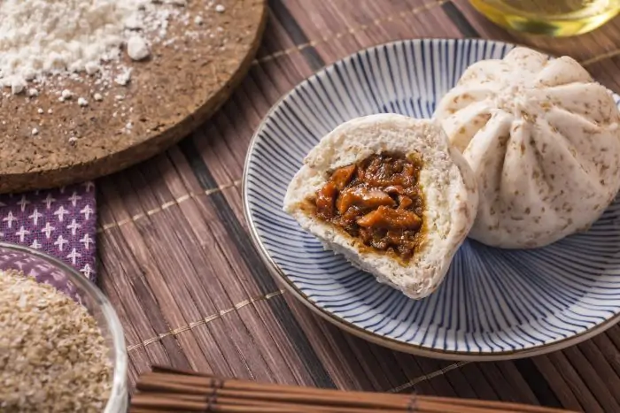 Ingredients: Dumpling Pastry, Turnip, Palm Oil, Black Fungus, Textured Soy Protein, Isolated Soy Protein, Water Chestnut, Carrot, Modified Tapioca Starch (E1412), Sugar, Egg White Powter, Sesame Oil, Salt, Monosodium Glutamate (E621), Vegetarian Chicken Flavour, Vegetarian Meat Flavour. Contains : Wheat, Soy, Egg, Sesame.